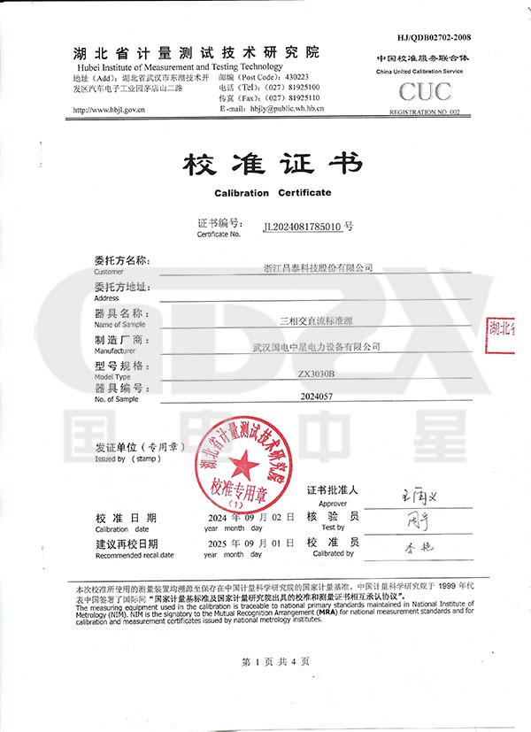 企業產品嚴格按照國際、國家標準及行業規程生產,通過國家、各省級、市級電力研究所、計量中心及電力權威部門的檢測,全面通過ISO9001國際質量管理體系認證、中華人 民共和國制造計量器具許可證、GB/T19001-2008質量管理體系要求、GB/T24001-2004環境管理 體系要求、GB/T28001-2011職業健康安全管理體系要求。